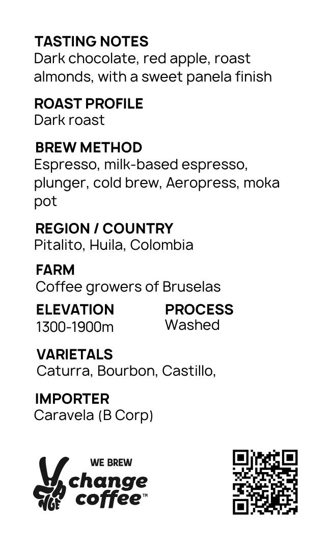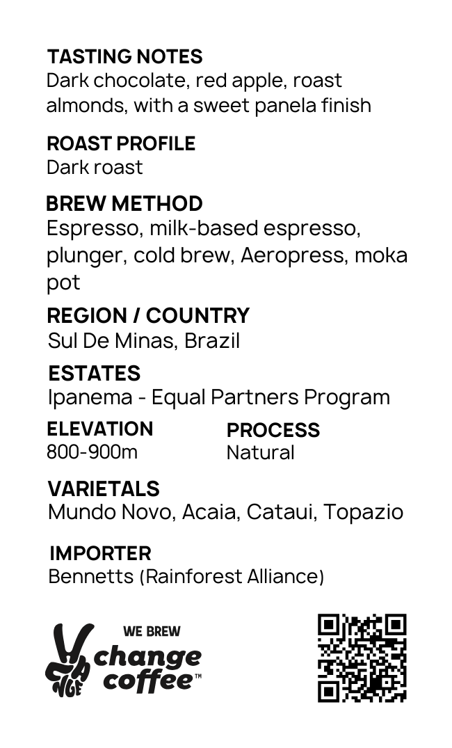 Perfect for any milk-based coffee or enjoyed dark. Smooth flavours of dark chocolate, red apple and roast almonds. It cuts milk beautifully, but it holds it’s own as a well-balanced full-bodied black coffee. Bronze medal winner at the Australian International Coffee Awards and Golden Bean Australasia 2024.